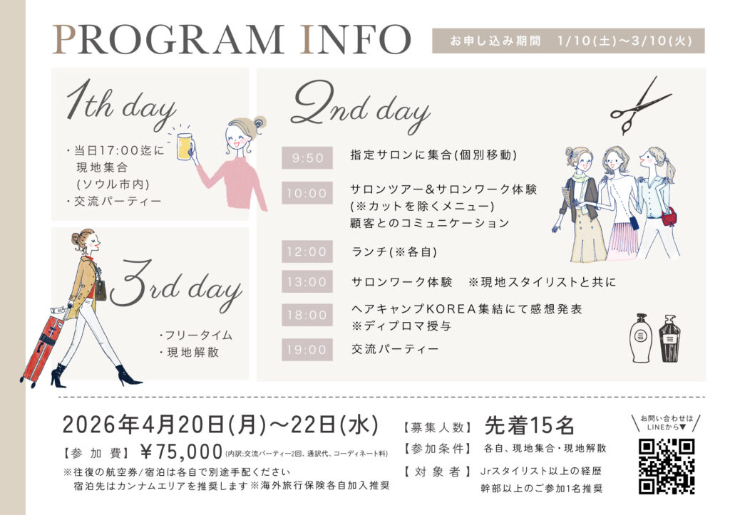 短期留学で韓国の技術を直接体感。現地のトップ美容師と交流しながら、日韓の最新技術を学び合える。将来的には、日本人講師として海外でセミナーを開くチャンスも。技術と感性を磨きながら、"指名(売れる、必要と)される美容師"へと確実にステップアップできる。